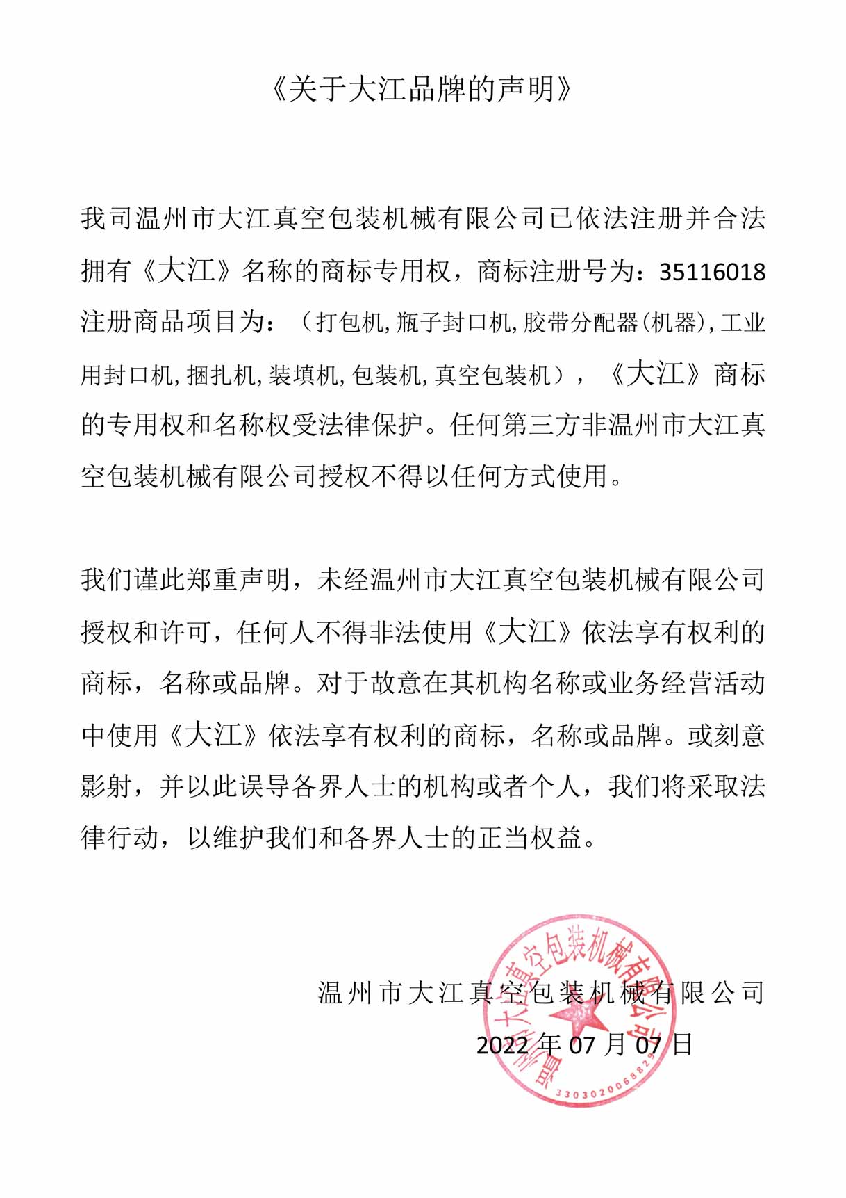 關(guān)于“大江”品牌的鄭重聲明2025-09-01